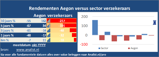De verzekeraar keerde de voorbije vijf jaar dividenden uit. Gemiddeld leverde het aandeel Aegon over de afgelopen 5 jaar een dividendrendement van 4.1 procent per jaar op.