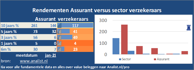 Sinds januari dit jaar verloor het aandeel Assurant 6 procent. Over de afgelopen 5 jaar staat het aandeel gigantisch hoger. 97 procent won de verzekeraarssector sinds 2010. Sinds 2015 staat de internationale sector 22 procent hoger en staat over de afgelopen 12 maanden 11 procent in de min. Medio 2020 was de verzekeraar op de beurs rond de 0 miljoen dollar waard. Daarmee is het aandeel een microcap.