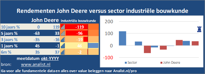 Over de afgelopen 5 jaar maakte het aandeel een forse koersstijging. De internationale industr. bouwkund staat sinds 2010 64 procent in de plus. Gemeten sinds 2015 staat de sector 24 procent hoger en over de voorbije 12 maanden (augustus 2019 - augustus 2020) staat de sector 1 procent verlies.