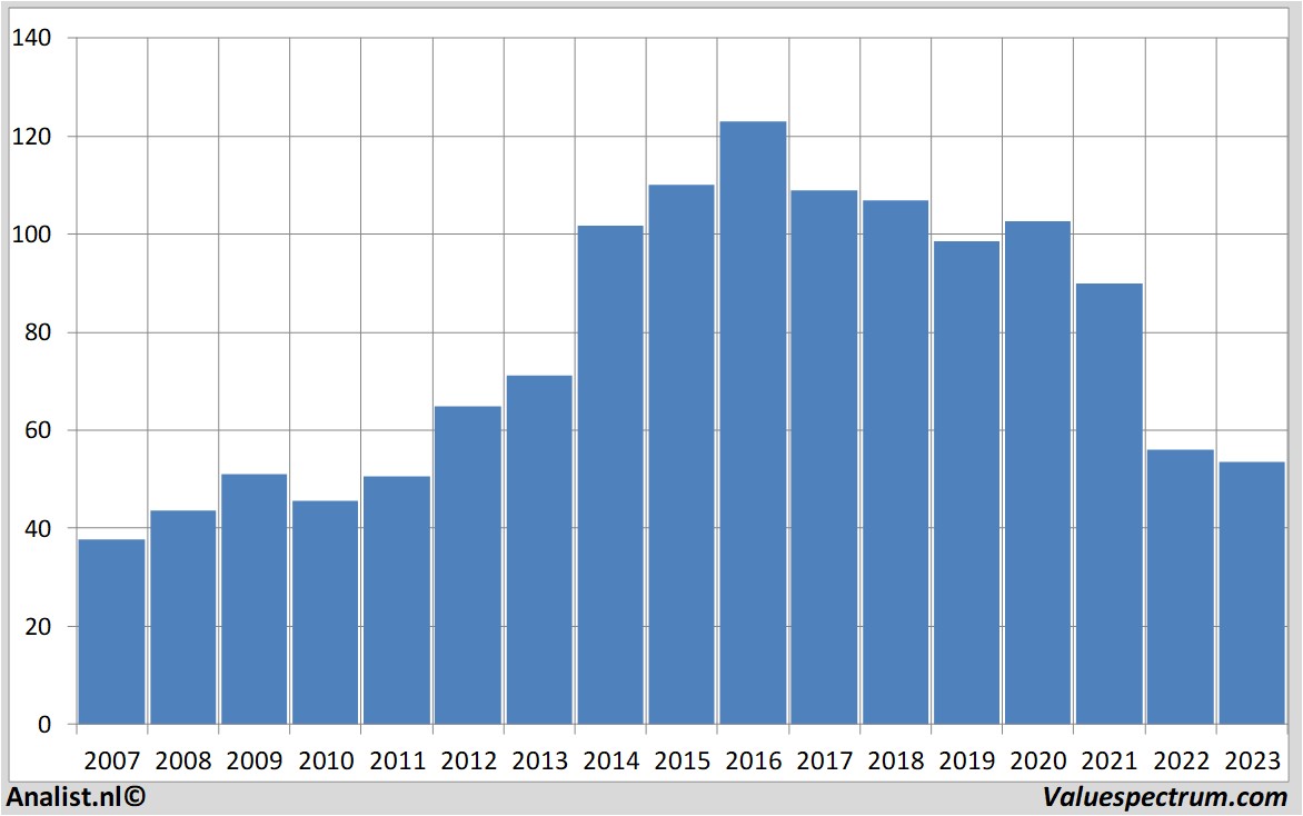 De analisten gaan voor 2023 uit van een nettowinst van 2 miljoen euro. Volgens de jongste analistenconsensus houdt het bedrijf over dit jaar een winst per aandeel van 1.28 euro over. De koerswinstverhouding komt zodoende op 41.8 te liggen.