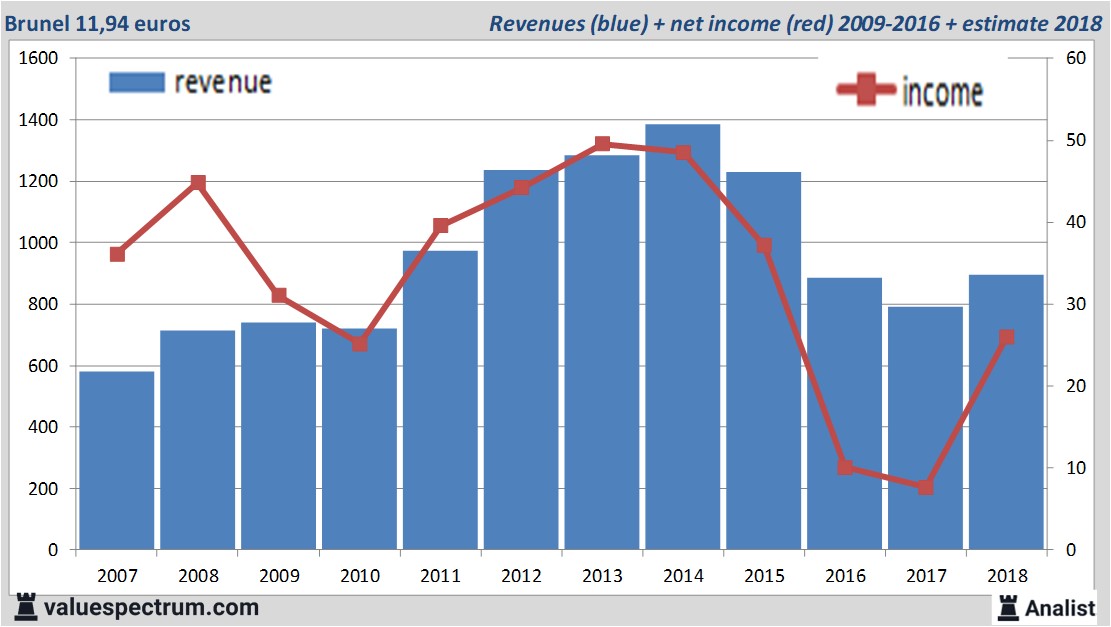 Op basis van het huidige aantal uitstaande aandelen bedraagt de marktkapitalisatie van Brunel ' nu rond de 601,94 miljoen euro. Het aandeel Brunel was de voorbije 12 maanden vrij volatiel. Gemeten vanaf oktober vorig jaar staat het aandeel Brunel 18 procent in het rood. Het aandeel koerste het laatste jaar tussen de 11 en de 17 euro. Sinds 2008 koerst het aandeel ruim 131 procent hoger.