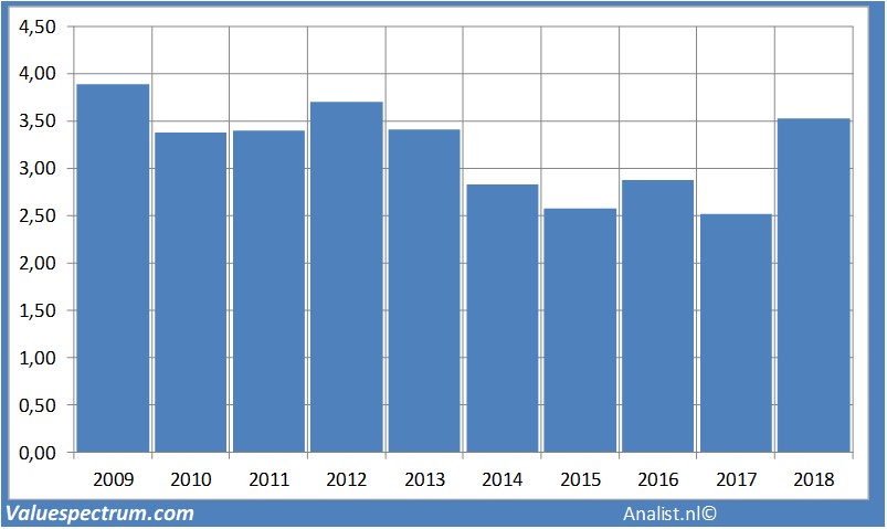De analisten gaan voor 2018 uit van een nettowinst van 170 miljoen euro. Gezien de laatste analistenconsensus heeft het bedrijf dit jaar een winst per aandeel van 2,01 euro. De koers-winst-verhouding ligt hiermee op 26,62.