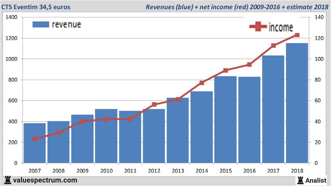 De meeste analisten rekenen voor 2018 op een nettowinst van 123 miljoen euro. Over dit jaar houdt het bedrijf volgens de analisten een winst per aandeel van 1,3 euro over. Zodoende komt de koerswinstverhouding op 26,54 uit.