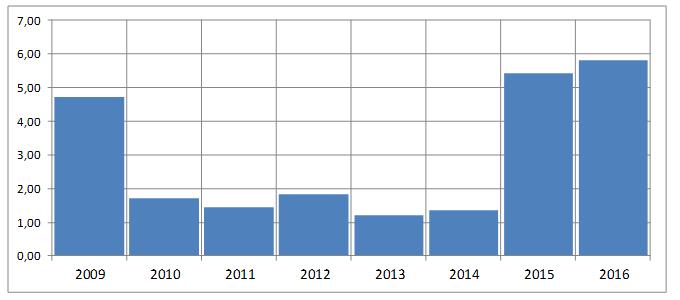 De gemiddelde verwachting van de omzet over dit jaar ligt volgens de analisten op 1,2 miljard euro. Dit is beperkt meer dan de omzet over 2015 toen de omzet 1,2 miljard euro bedroeg.