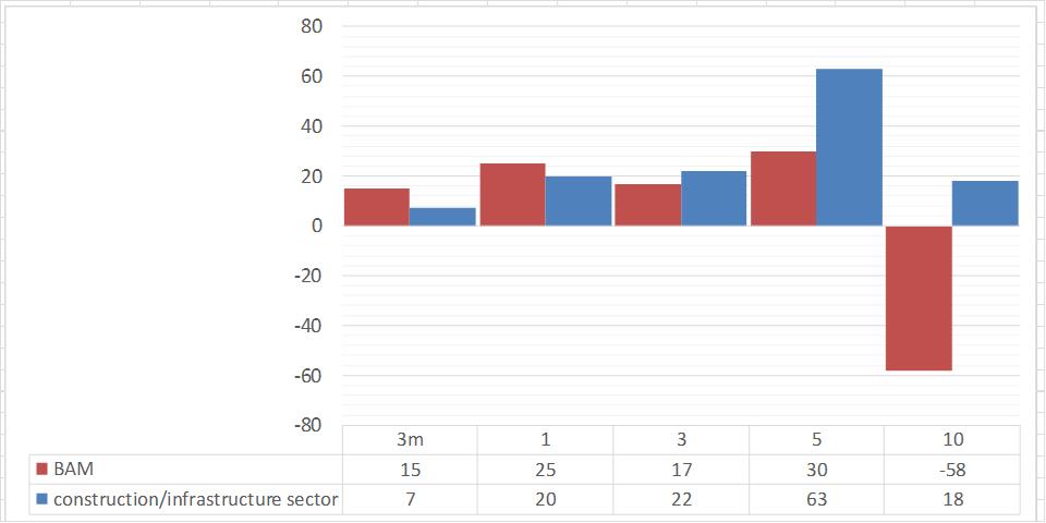 Over dit jaar ligt de consensus van BAM 's resultaat per aandeel op een winst van 45 cent. Op basis hiervan komt de koerswinstverhouding op 11,2 te liggen.