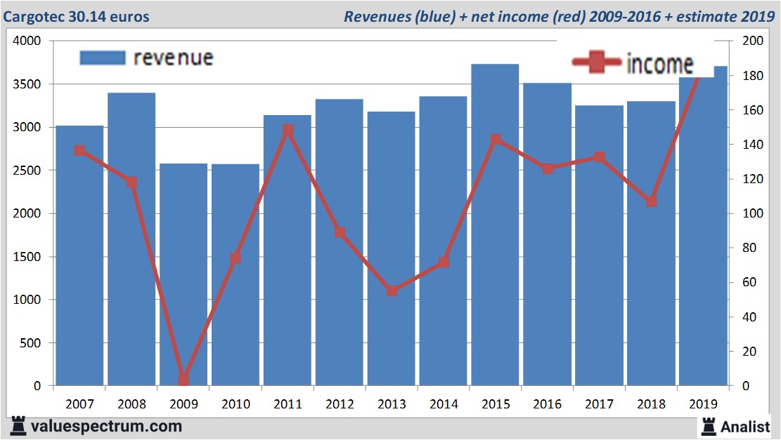 Morgen zal het Finse Cargotec met haar resultaten over het afgelopen kwartaal komen. De gemiddelde verwachting van de omzet over dit jaar ligt volgens de analisten op 3.71 miljard euro. Dit is aanzienlijk meer dan de omzet over 2018 toen het concern 3.3 miljard euro verdiende.