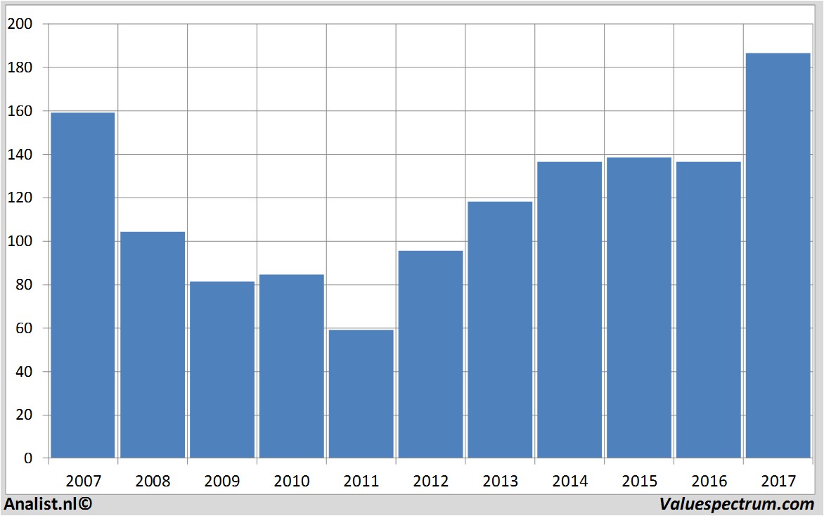 De analisten gaan voor 2017 uit van een nettowinst van 7,19 miljard euro. Voor dit jaar ligt de consensus van het resultaat per aandeel op een winst van 16,15 euro. De koers/winstverhouding komt hiermee op 11,56 te liggen.