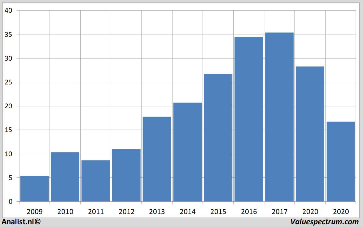 De analisten gaan voor 2020 uit van een nettowinst van 55 miljoen euro. Voor dit jaar ligt de consensus van het resultaat per aandeel op een winst van 60 cent. Op basis hiervan komt de koerswinstverhouding op 27,85 uit.