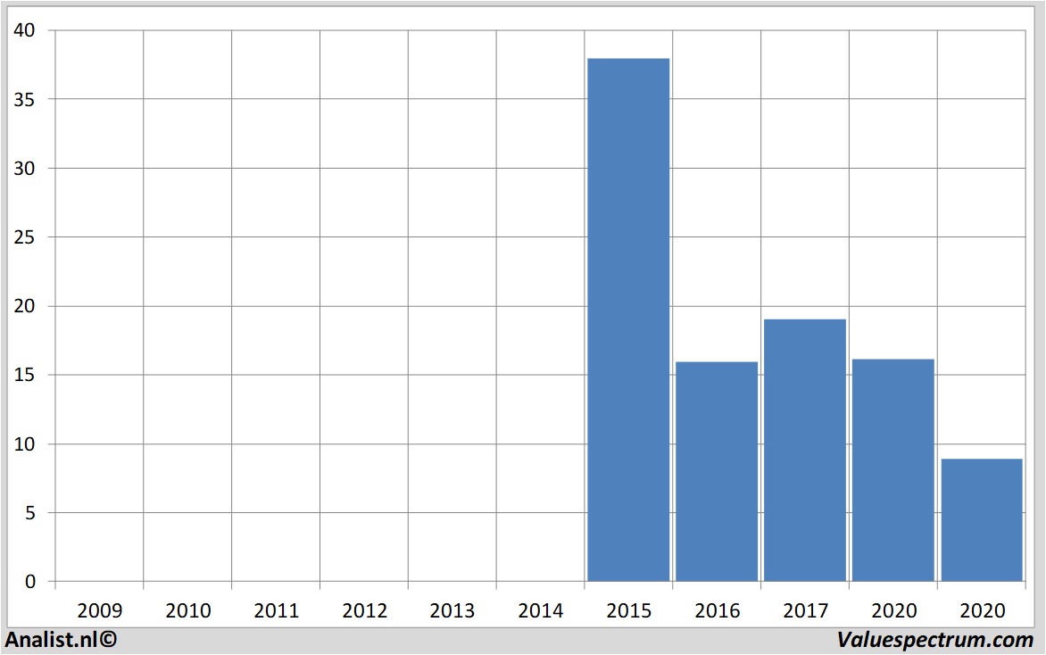 Onderaan de streep rekenen de analisten op een nettoverlies van 331 miljoen dollar. Over dit jaar houdt het bedrijf volgens de analisten een verlies per aandeel van 73 cent over. Zodoende komt de koerswinstverhouding op -12,18 uit.