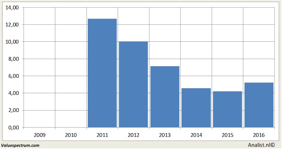 De meeste analisten rekenen voor 2017 op een nettowinst van 251 miljoen euro. Over dit jaar houdt het bedrijf volgens de analisten een winst per aandeel van 1,96 euro over. Op basis hiervan komt de koerswinstverhouding op 16,16 te liggen.