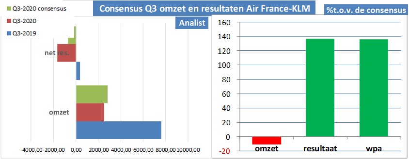 De omzet van het Nederlandse bedrijf Air France- Air France-KLM over het voorbije kwartaal was behoorlijk lager dan de meeste Nederlandse analisten verwacht hadden. De omzet daalde van 7,61 miljard euro naar 2,52 miljard euro. Het analistengilde rekende op 2,83 miljard euro. Het nettoresultaat kwam uit op een verlies van 1,66 miljard euro (de verwachtingen van de markt lagen op een verlies van 703 miljoen euro).