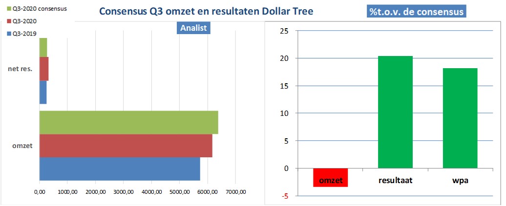 Over het voorbije kwartaal kwam de omzet van de detailhandelaar Dollar Tree min of meer overeen met waar de analisten op geanticipeerd hadden. Het bedrijf zag zowel haar omzet als haar nettoresultaat omhoog gaan. De totale inkomsten omhoog van 5,75 miljard dollar naar 6,18 miljard dollar zo bleek uit een publicatie van woensdag. De doorsnee verwachting van de analisten lag op 6,39 miljard dollar.