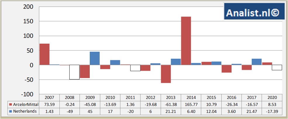 Beleggers in het aandeel ArcelorMittal hebben de laatste jaren behoorlijke klappen opgelopen. Het aandeel was de afgelopen 10 jaar met een royaal verlies van 71 procent één van de slechtste aandelen van Nederland.
