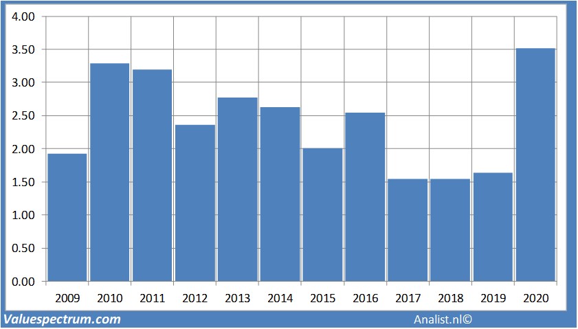 De analisten gaan voor 2021 uit van een nettowinst van 1.11 miljard euro. Over dit jaar wordt door het gros van de analisten, zoals gepolst door persbureau Thomson Reuters, een winst per aandeel van 1.37 euro verwacht. Zodoende komt de koerswinstverhouding op 11.2 uit.