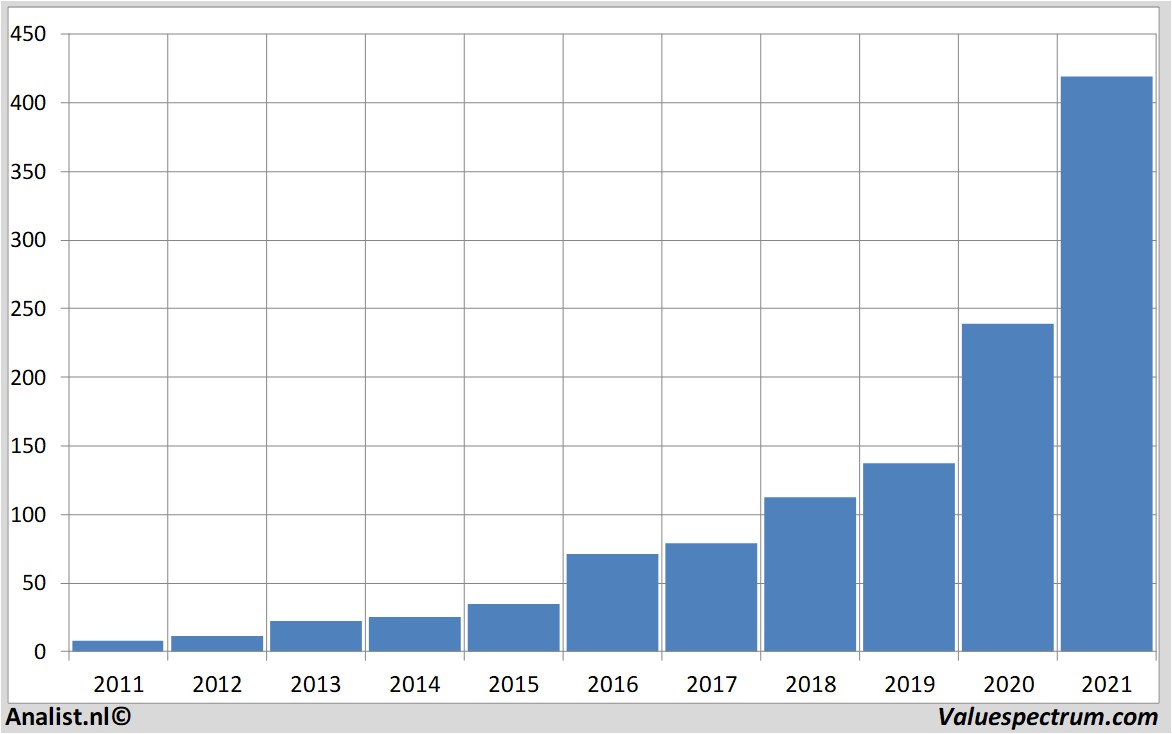 De analisten gaan voor 2021 uit van een nettowinst van 213 miljoen euro. Volgens de laatste rondgang langs de analisten stevent het bedrijf af op een winst per aandeel van 6.28 euro. Hiermee komt de koers/winst-verhouding op een extreme 66.72 te liggen.