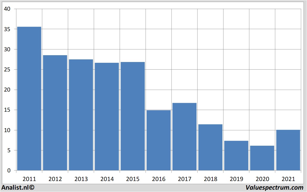 Onderaan de streep rekenen de meeste analisten op een nettowinst van 1.23 miljard euro. Volgens de laatste rondgang langs de analisten stevent het bedrijf af op een winst per aandeel van 56 cent. De koers-winst-verhouding ligt hiermee op 18.