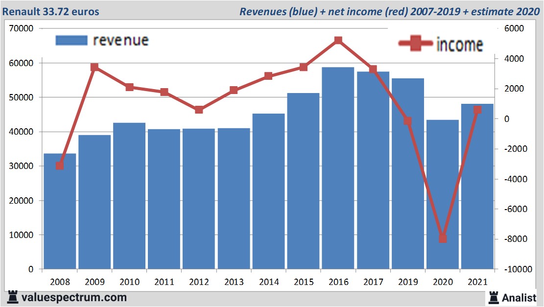 Over 2021 verdient het bedrijf uit Boulogne-Billancourt volgens de gepolste analisten uit op 48.14 miljard euro. Dit is aanzienlijk meer dan de omzet over 2020 toen het bedrijf 43.47 miljard euro verdiende.
