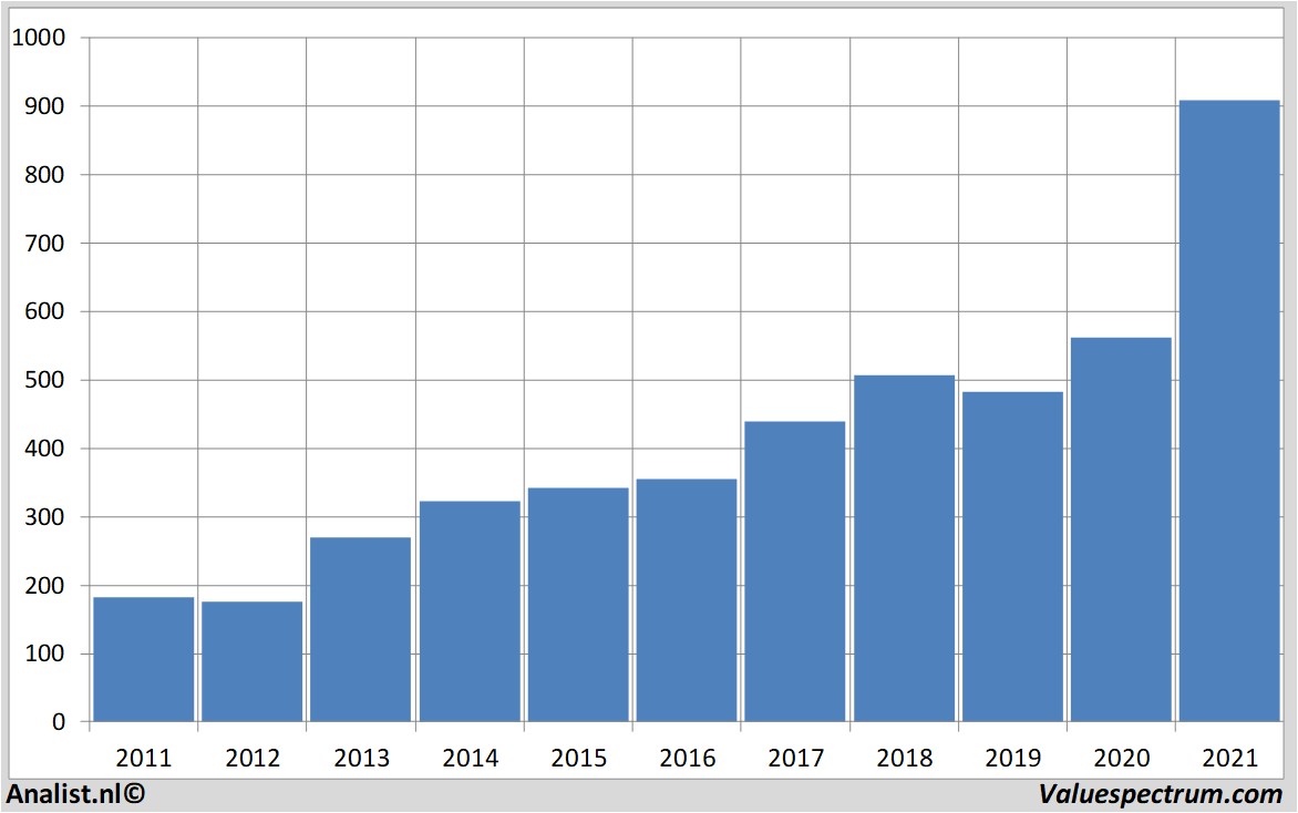 De beurswaarde bedraagt op basis van het aantal uitstaande aandelen maal de beurskoers ruim 140.18 miljard dollar. Het aandeel was de afgelopen 12 maanden vrij bewegelijk. Sinds een jaar terug staat het aandeel maar liefst 65 procent in de plus. Het aandeel koerste het laatste jaar tussen de 531 en de 920 dollar.