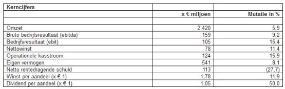 De winst over het boekjaar bedroeg ruim € 78 miljoen. Dat is € 8 miljoen of 11,4% meer dan in 2010. Zoals op 4 januari jl. bericht, bedroeg de omzet over 2011 € 2.420 miljoen, een toename van 5,9%. De autonome omzetgroei beliep 3,7%. Het bedrijf stelt voor het dividend per aandeel naar € 1,05 te verhogen (€ 0,85 regulier en € 0,20 variabel). De brutowinst nam met 6,2% toe tot € 562 miljoen. De procentuele brutowinstmarge nam toe met 0,1% tot 23,2%, ondanks prijsdruk in de markt.
