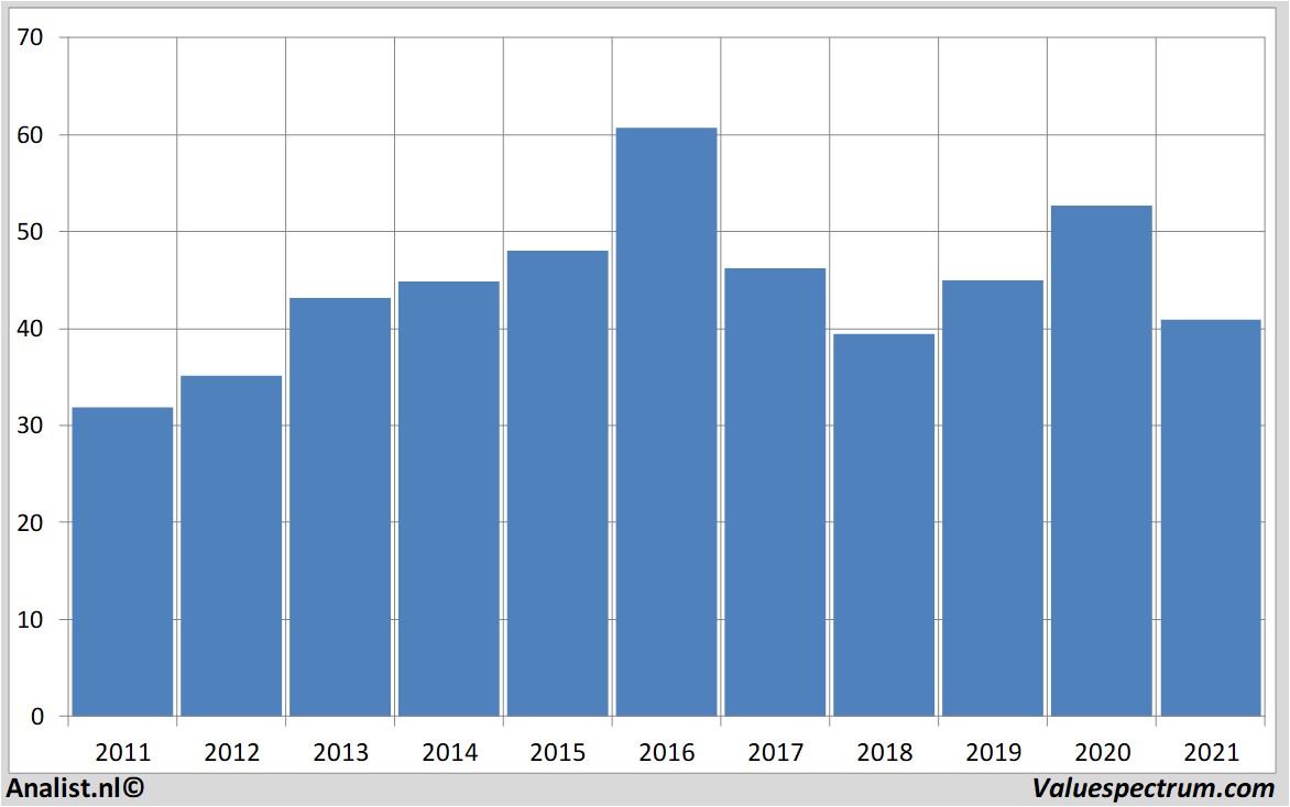 De analisten gaan voor 2021 uit van een nettowinst van 886 miljoen dollar. Over dit jaar wordt door het gros van de analisten, zoals gepolst door persbureau Thomson Reuters, een winst per aandeel van 2.91 dollar verwacht. De koers-winst-verhouding ligt hiermee op 14.08.