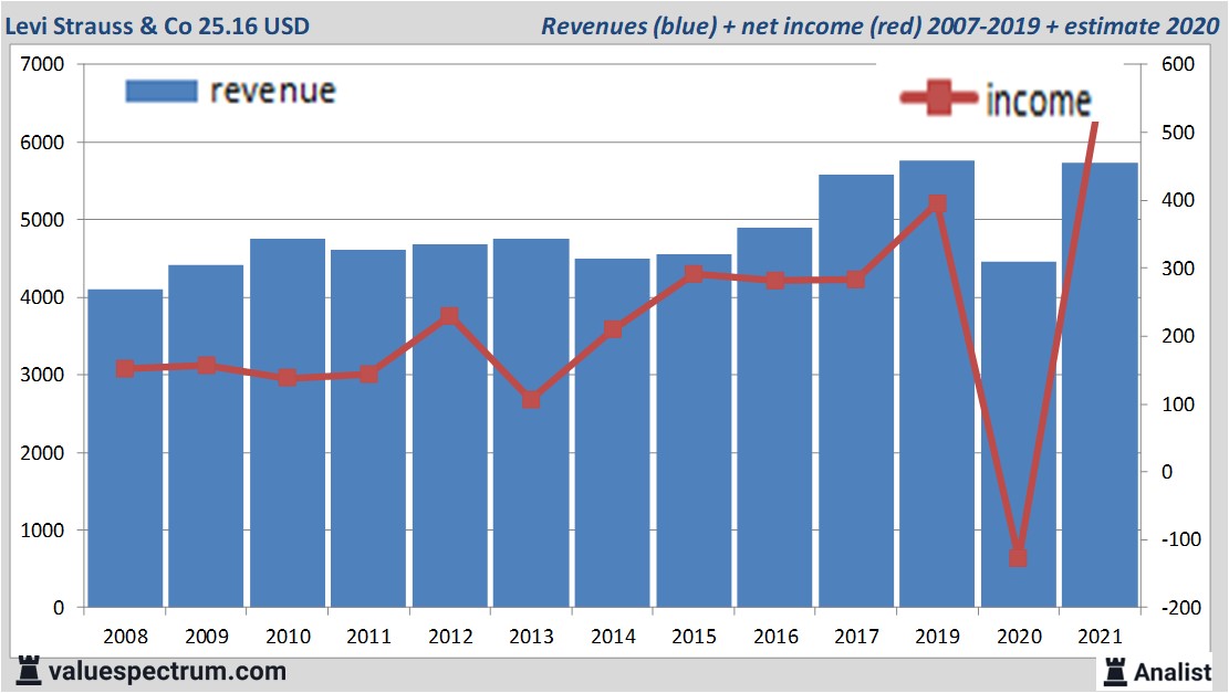 Morgen zal het Amerikaanse Levi Strauss & Co haar resultaten over het afgelopen kwartaal bekend maken. Over 2021 komt de omzet van het bedrijf uit San Francisco volgens de analisten uit op 5.74 miljard dollar. Dit is fors meer dan de omzet over 2021 toen het concern 4.45 miljard dollar verdiende.
