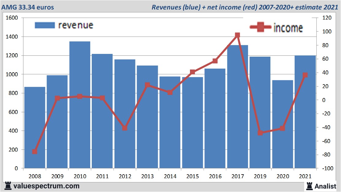AMG komt morgen met haar resultaten over het voorbije kwartaal. Over het huidige boekjaar komt de omzet van het bedrijf uit Amsterdam volgens de analisten uit op 1.2 miljard euro. Dit is behoorlijk minder dan de omzet over 2021 toen het concern 937.12 miljoen euro verdiende.